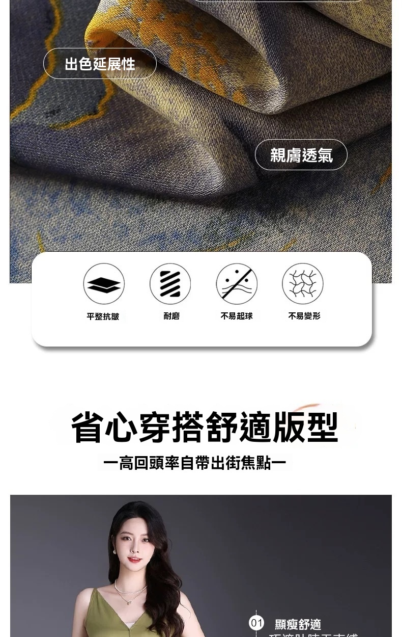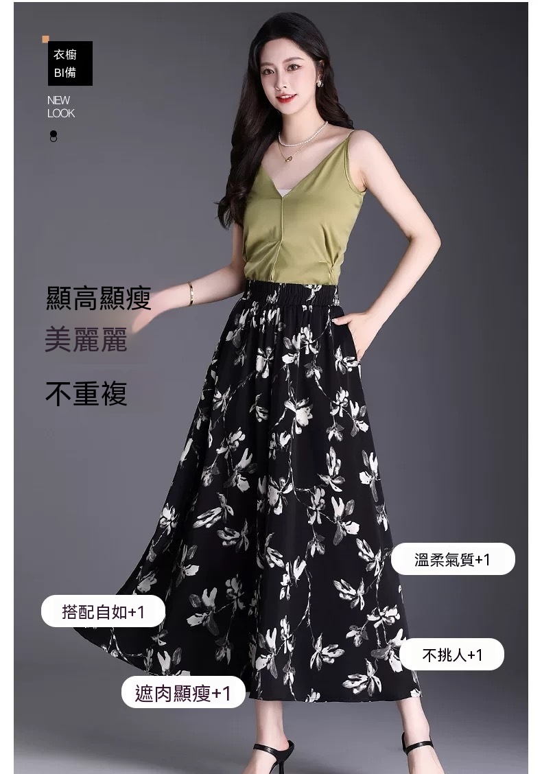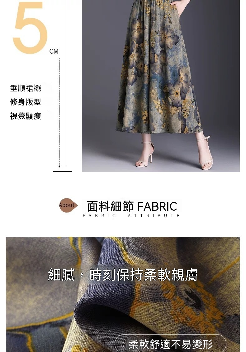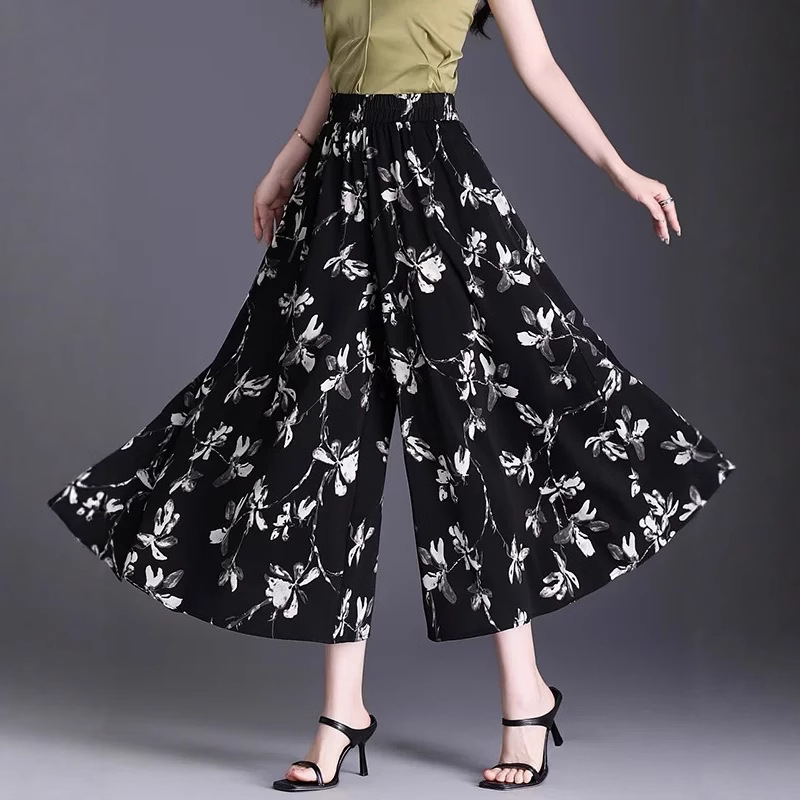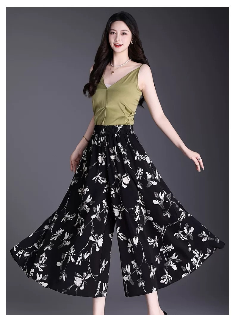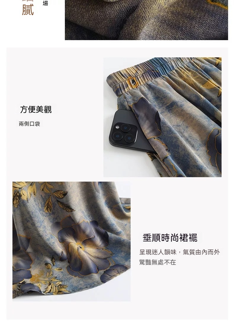 高彈鬆緊腰不挑身材,闊腿版型遮肉顯瘦,水墨花紋復古高級,垂感飄逸透氣舒適