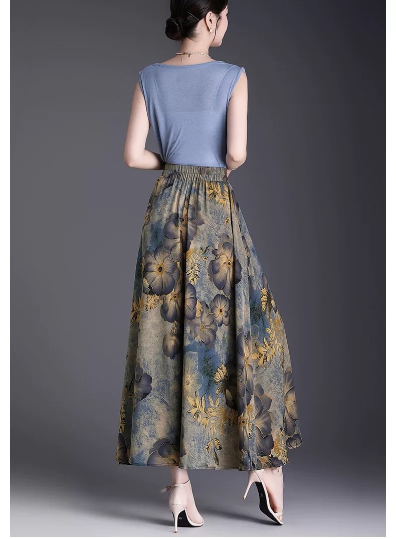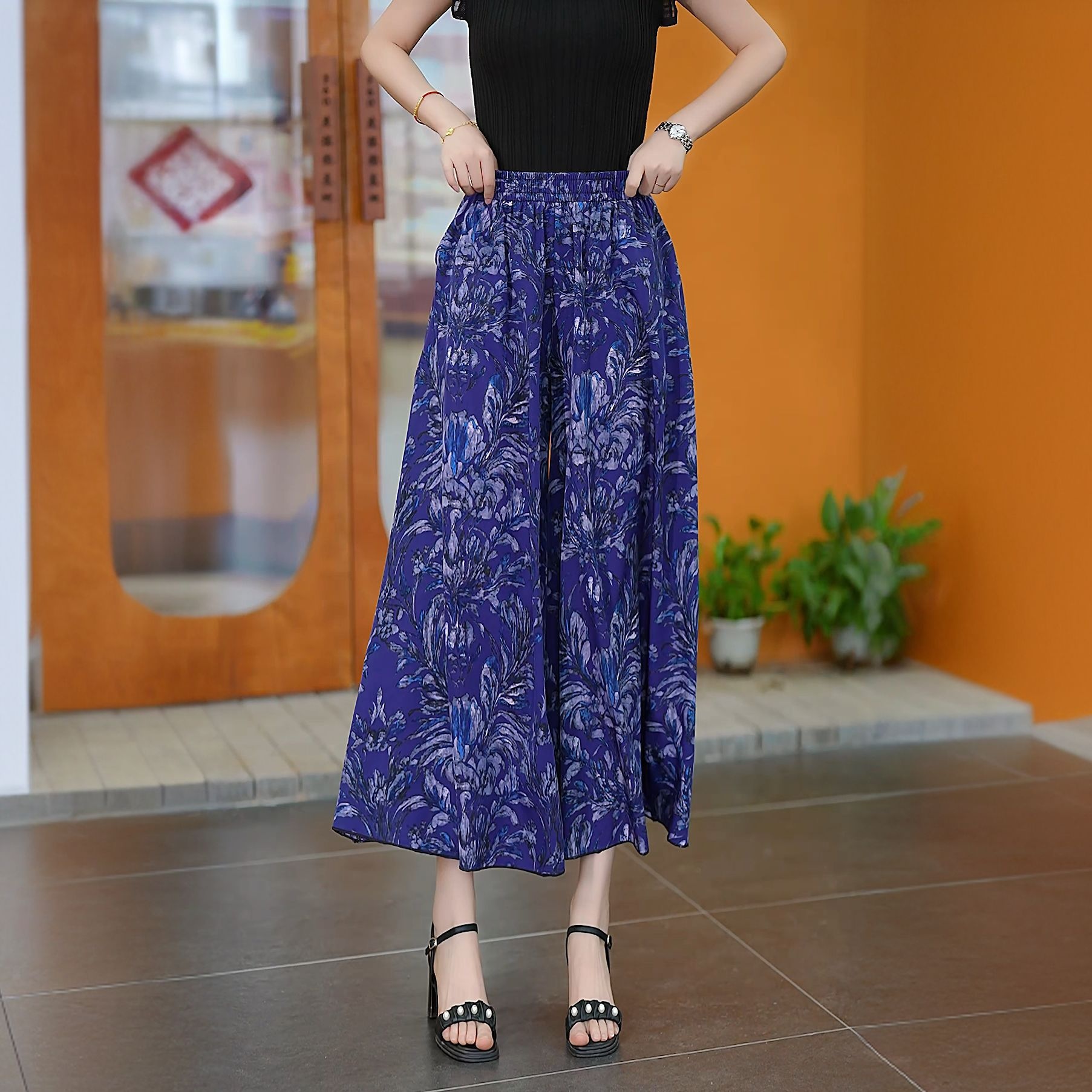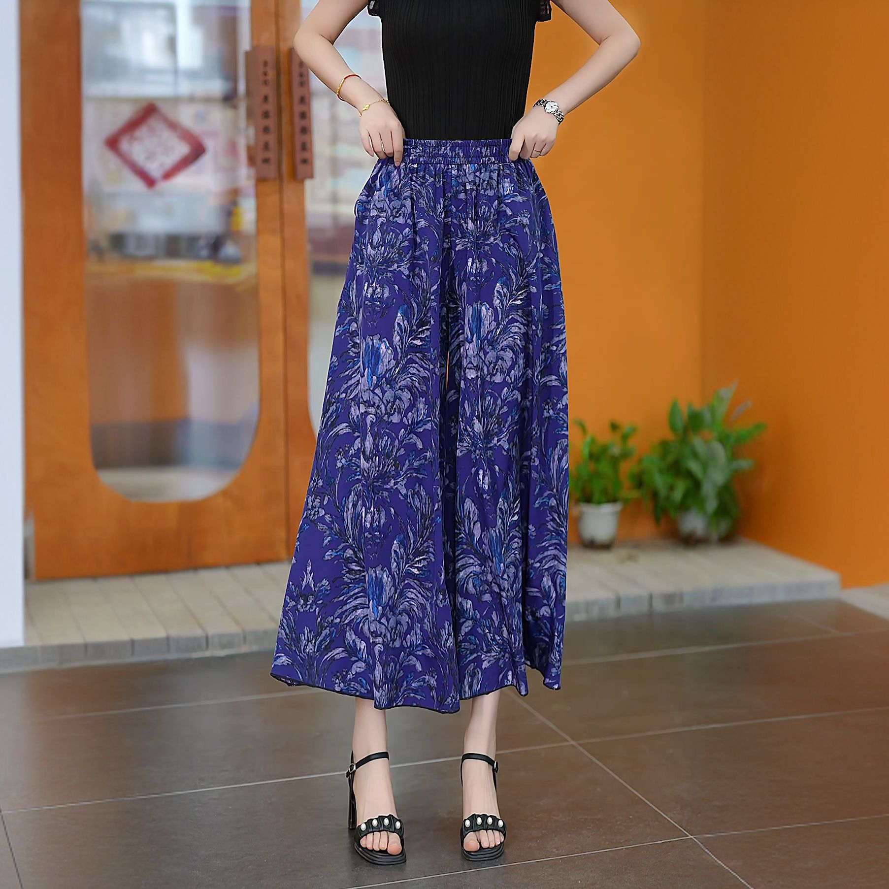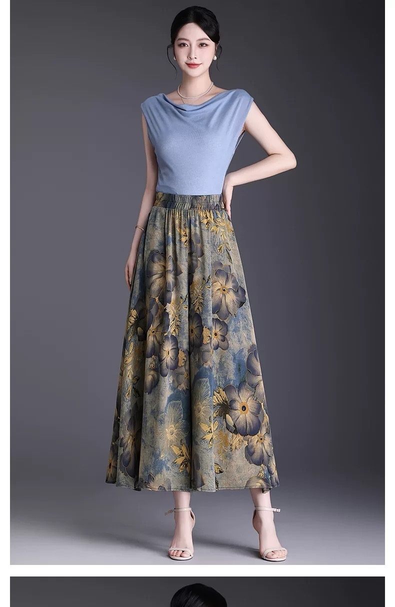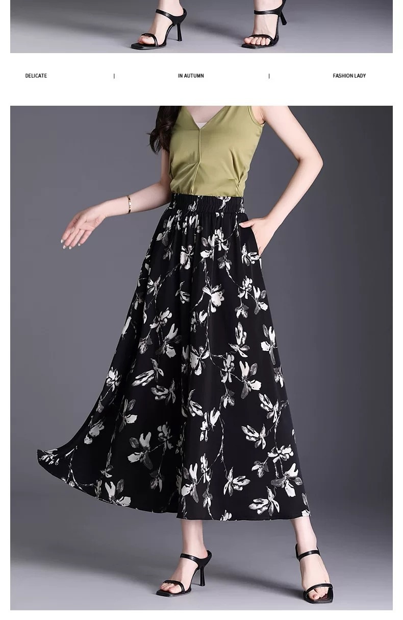 高彈鬆緊腰不挑身材,闊腿版型遮肉顯瘦,水墨花紋復古高級,垂感飄逸透氣舒適