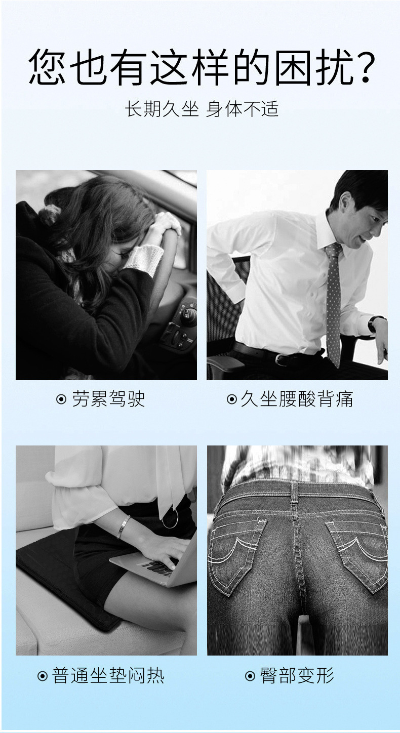 六面支撐散熱透氣,冰涼體感久坐不悶,四季通用不悶熱,汽車辦公室都適用